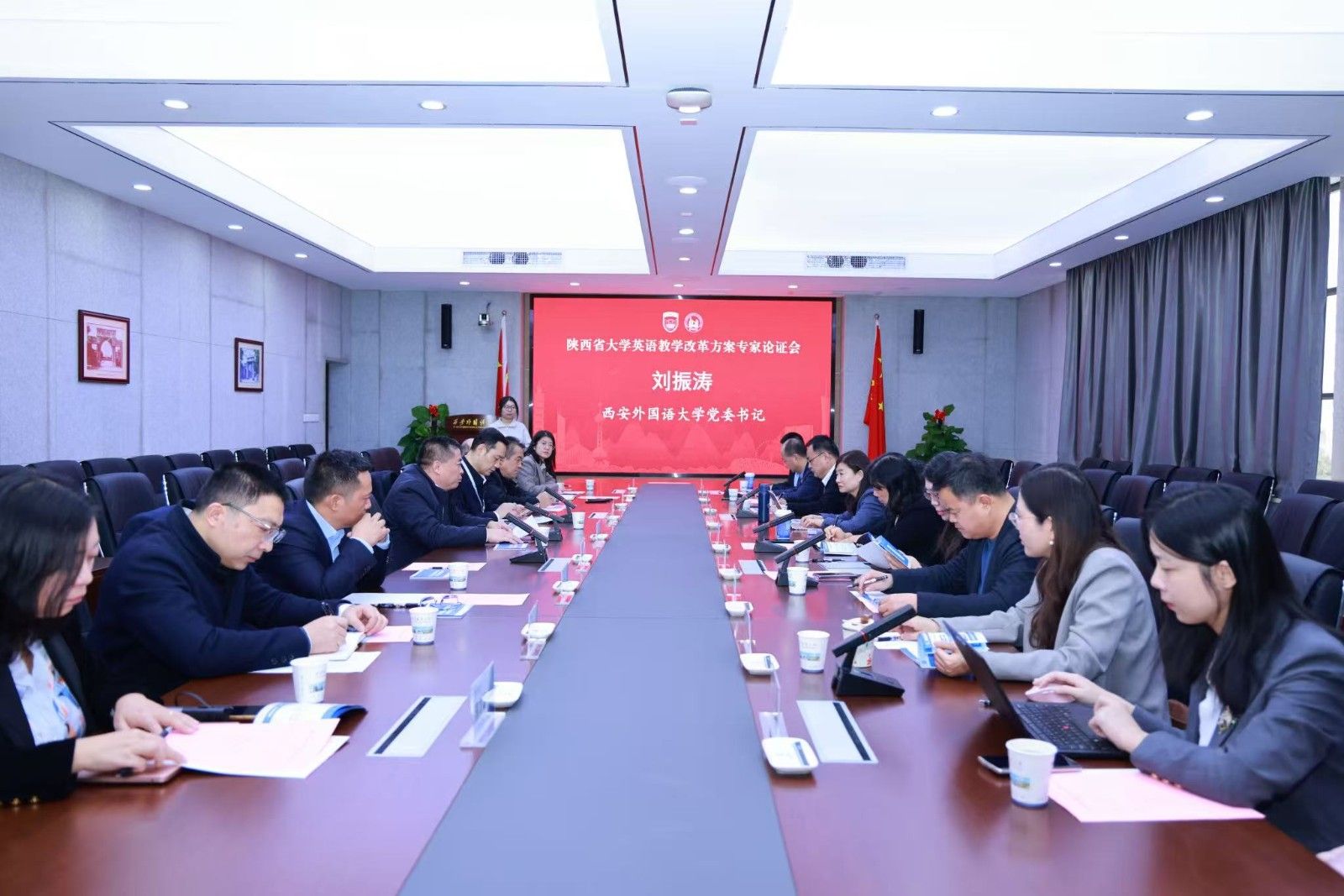 20日上午召开的专家论证会由党委副书记、校长吴耀武主持。党委书记刘振涛在致辞中对专家组表示欢迎和感谢。他指出,大学英语教学改革是落实国家高等教育教学改革部署的重要举措,期待通过本次论证凝聚多方智慧,形成科学可行的改革路径,破解当前大学英语教学瓶颈,提升人才培养质量。英文学院大学英语教学部负责人汇报了与省教育厅共同起草的陕西省大学英语教学改革方案,外研社有关负责人讲解了配合大学英语改革的一体化平台建设情况。