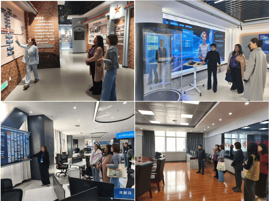 评审期间,专家组通过18场座谈会与实地考察,围绕教育领导力、战略规划、学习成果评价、师资建设、课程设置及人才培养等七大认证标准展开全面核查。校内访谈覆盖校领导、教务处、教学质量监测与评估办公室、人力资源部、招生办公室、学工部、图书馆、计划财务部、科研处、学术期刊中心等多个职能部门,以及商学院、经济金融学院、旅游学院、英文学院的管理团队、专业教师、学生代表等,深入了解学校在认证推进、教师支持、学生服务、质量评估等方面的实际举措。专家组还与用人单位代表、校友代表及学院咨询委员会成员进行了较为深入的座谈,听取了外部专家对国际商学部各个学院发展战略、课程建设及人才培养的参与情况,以及毕业生职业发展反馈。专家组还实地走访了图书馆、校史馆、国际传播中心、人工智能实训实验室、信息化处办公室及学院教室与资料室,细致查阅了学校本科教学文件、管理制度、人才培养方案、教学大纲、专业教学档案、教材选用与建设、师资队伍建设、课程考核资料、实习实训记录、毕业论文(设计)材料、听课评课记录、教学质量监控、教学改革成果、学生学习成效分析等关键资料,全面考察了学校在制度建设、教学设施、资源保障、学生支持、实践教学与师资发展等方面的建设成效。