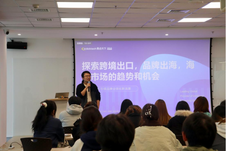 易点天下业务覆盖全球238个国家和地区,核心服务涵盖效果广告、AI数字创意等多元领域,累计服务华为、SHEIN等超5000家企业。活动中,师生参观了中国(西安)出海产业生态展厅,通过数字展板、案例演示,系统了解易点天下的发展历程与技术应用,直观感受AI技术为跨境行业出海营销降本增效的实践成果。在专题分享会上,企业专家围绕海外市场趋势与机会展开讲解,剖析AIGC对品牌出海的重塑作用,介绍公司依托全球平台联动,助力品牌实现技术赋能与本地化表达双重突破的实践经验,为同学们带来前沿行业洞察。